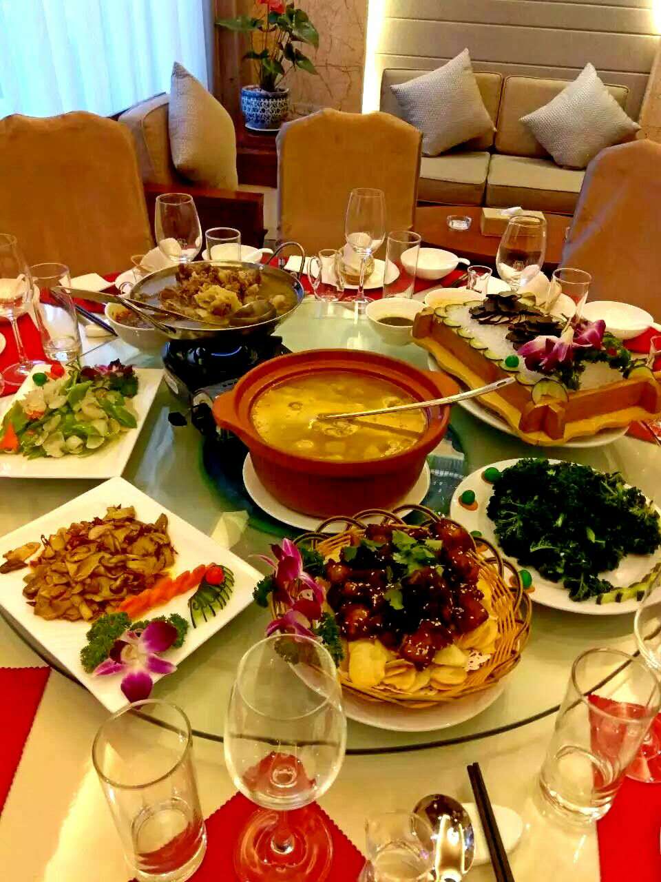 宴會廳可同時容納150人就餐,精致寬敞、是朋友聚會、商務(wù)宴請、喜慶婚宴的理想場所。我們秉承 “土菜精做、健康生態(tài)” 的理念融合滇菜之濃郁精華,呈現(xiàn)不同風(fēng)味菜肴的特點,集膳食養(yǎng)生和綠色健康為一體。置身于清凈雅致風(fēng)景如畫的花園露臺,一杯清涼的啤酒,幾串美味的燒烤,體會愜意生活